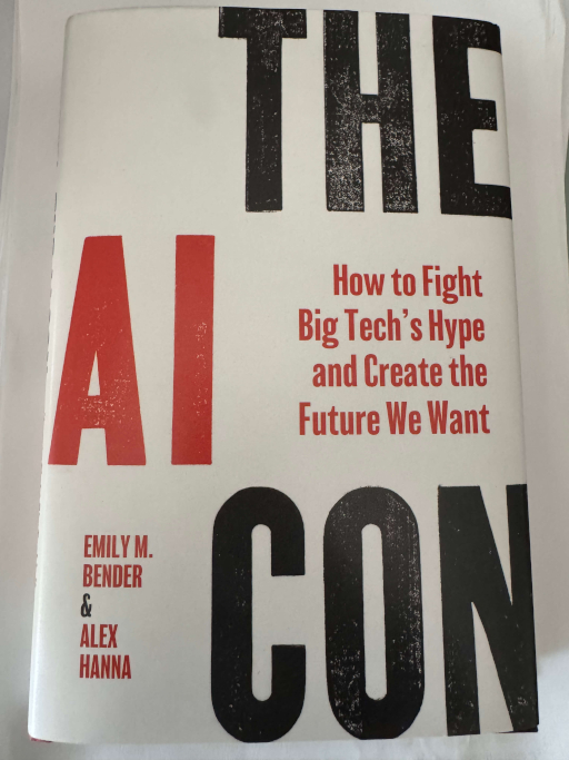 As the title says, the book talks about the cons of AI: environmental issues, exploitation of people, copyright, educational problems, political problems, and so on.